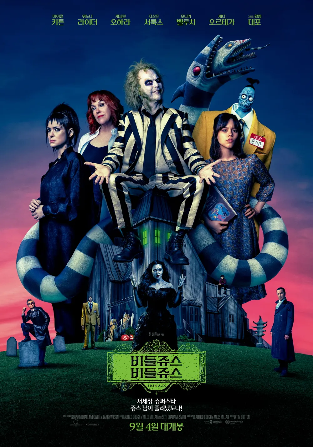 전편에서 엉뚱하고 매력적인 유령 비틀 주스의 활약으로 큰 웃음을 선사했던 것처럼, <비틀 주스 비틀 주스> 역시 더욱 업그레이드된 유령 소동극을 예고하고 있습니다. 갑작스러운 가족의 죽음 이후 다시 한번 유령의 세계와 연결되는 딜리아와 리디아, 그리고 그들 앞에 다시 나타난 비틀 주스의 이야기는 더욱 예측 불가능하고 기상천외한 사건들로 가득할 것으로 보입니다. 공개된 짧은 티저 예고편만으로도 팀 버튼 특유의 독특한 미장센과 위트 넘치는 연출을 엿볼 수 있어 기대감을 증폭시킵니다.